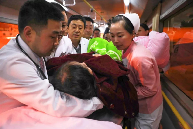 12月4日晚18點,西安國際醫(yī)學(xué)中心醫(yī)院神經(jīng)外科已做好了一切迎接患者的準(zhǔn)備,賀世明主任領(lǐng)隊的西北首臺腦卒中救援車也準(zhǔn)時從西安國際醫(yī)學(xué)中心醫(yī)院出發(fā)。救援過程中,得到了西安咸陽機場海關(guān)、西安咸陽國際機場運行控制協(xié)調(diào)中心以及春秋航空的大力支持,晚20點55,落地的航班與救護車第一時間在停機坪實現(xiàn)了無縫對接,醫(yī)護人員齊心協(xié)力將患者安全轉(zhuǎn)運至西安國際醫(yī)學(xué)中心醫(yī)院,接受進一步治療。