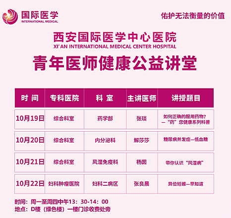 西安國際醫(yī)學中心醫(yī)院—青年醫(yī)師健康公益講堂預(yù)告