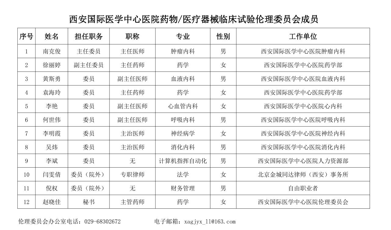 西安國際醫(yī)學(xué)中心醫(yī)院藥物/醫(yī)療器械|臨床試驗倫理委員會成員