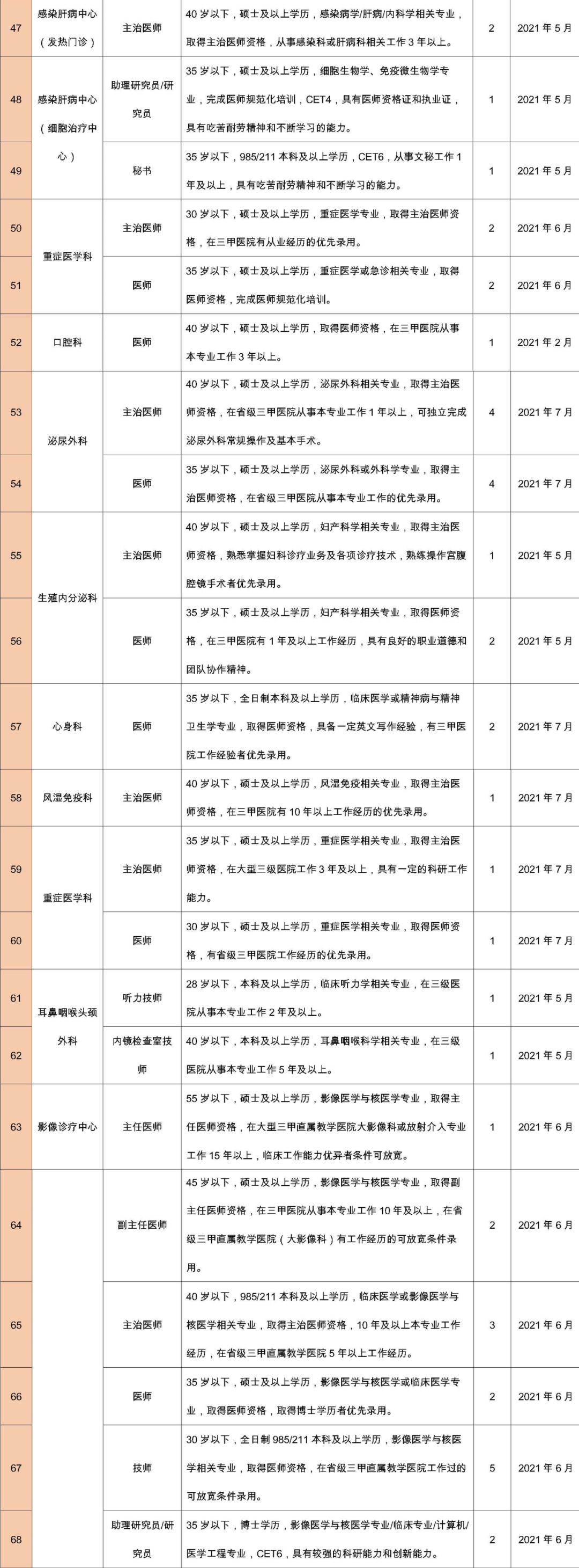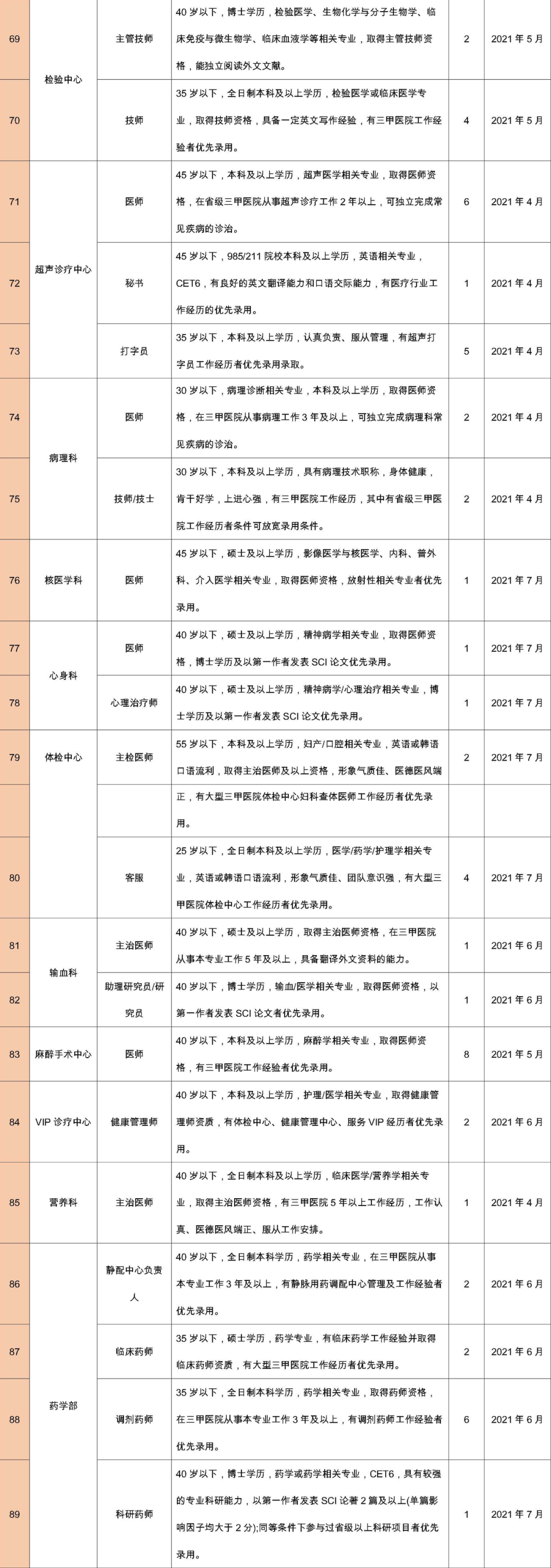 擁護黨的路線、方針、政策;遵守國家法律、法規(guī);熱愛本職工作,責(zé)任心強,有良好的職業(yè)道德,認同國際醫(yī)學(xué)價值理念,愿意投身醫(yī)療事業(yè);所學(xué)專業(yè)必須與應(yīng)聘崗位要求相符或必須具有相關(guān)從業(yè)經(jīng)歷。